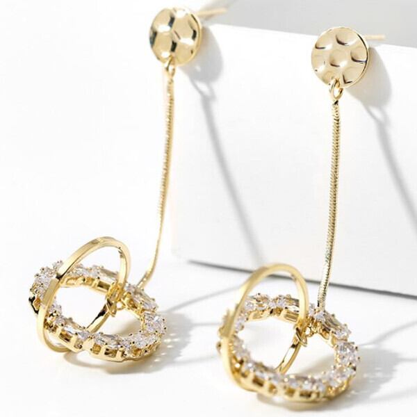 顔まわりを明るくしてくれるWリングモチーフのピアスです。華奢なデザインなので上品な雰囲気にしてくれそう。