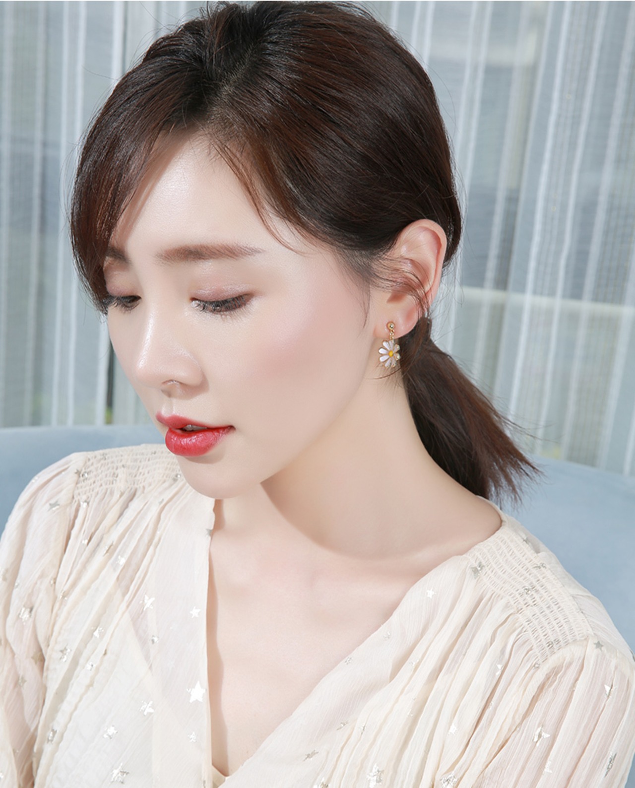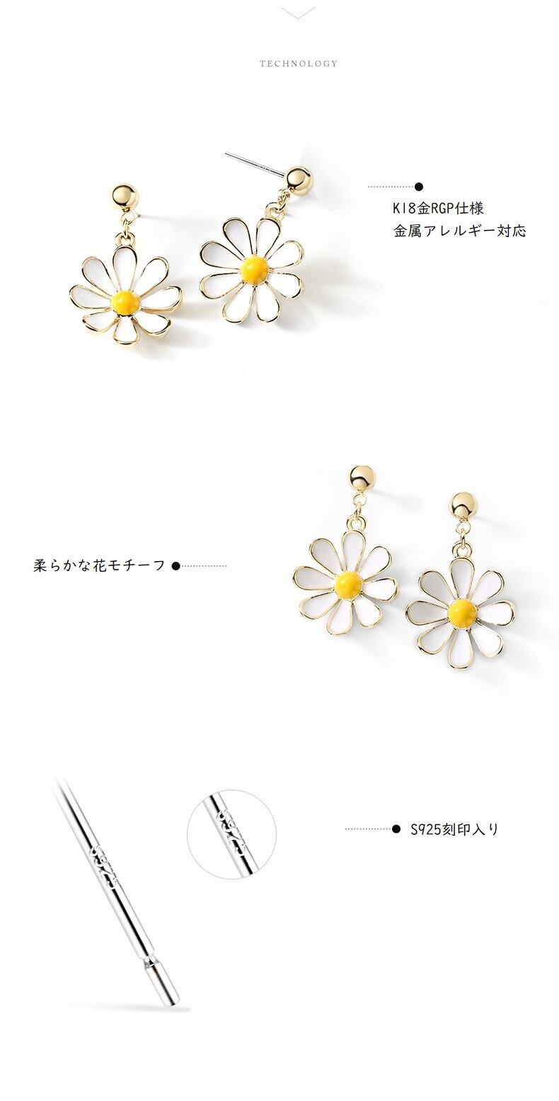 ホワイトベースに柔らかな花モチーフを合わせた優しい印象のピアス。