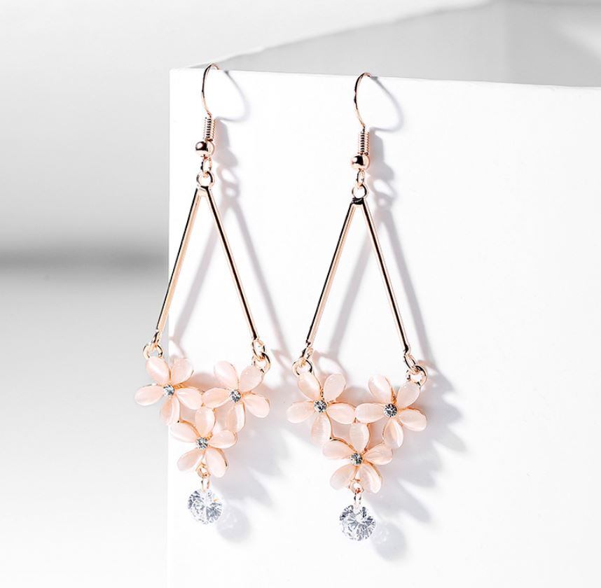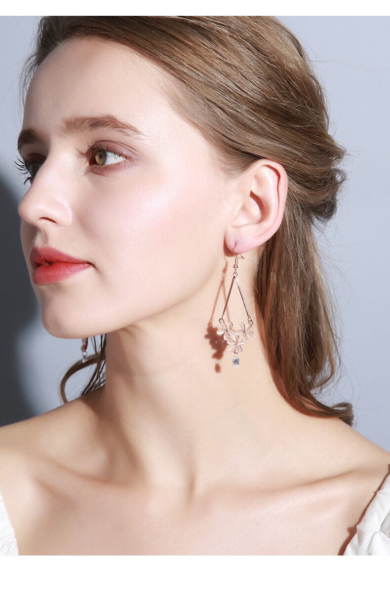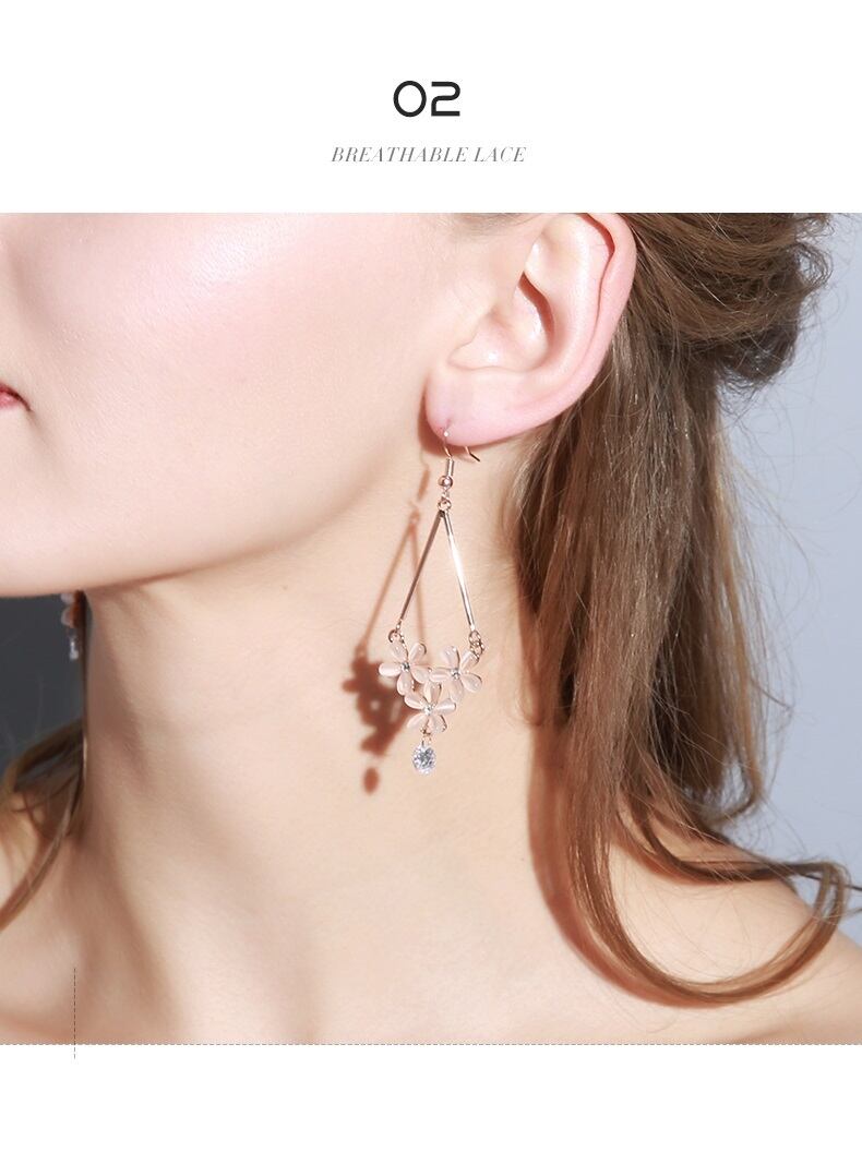 耳元で揺れる柔らかな花モチーフを合わせた優しい印象のピアス。